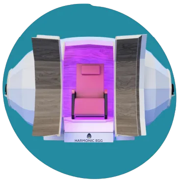 Each session begins with a short conversation to explore why you’re here and how you’re feeling today. We’ll use this time to select sound and light frequencies that support your individual needs. Once inside the Harmonic Egg®, you’ll recline comfortably in a zero-gravity chair and simply rest as the chamber surrounds you with resonant sound, soft light, and geometric harmony.
